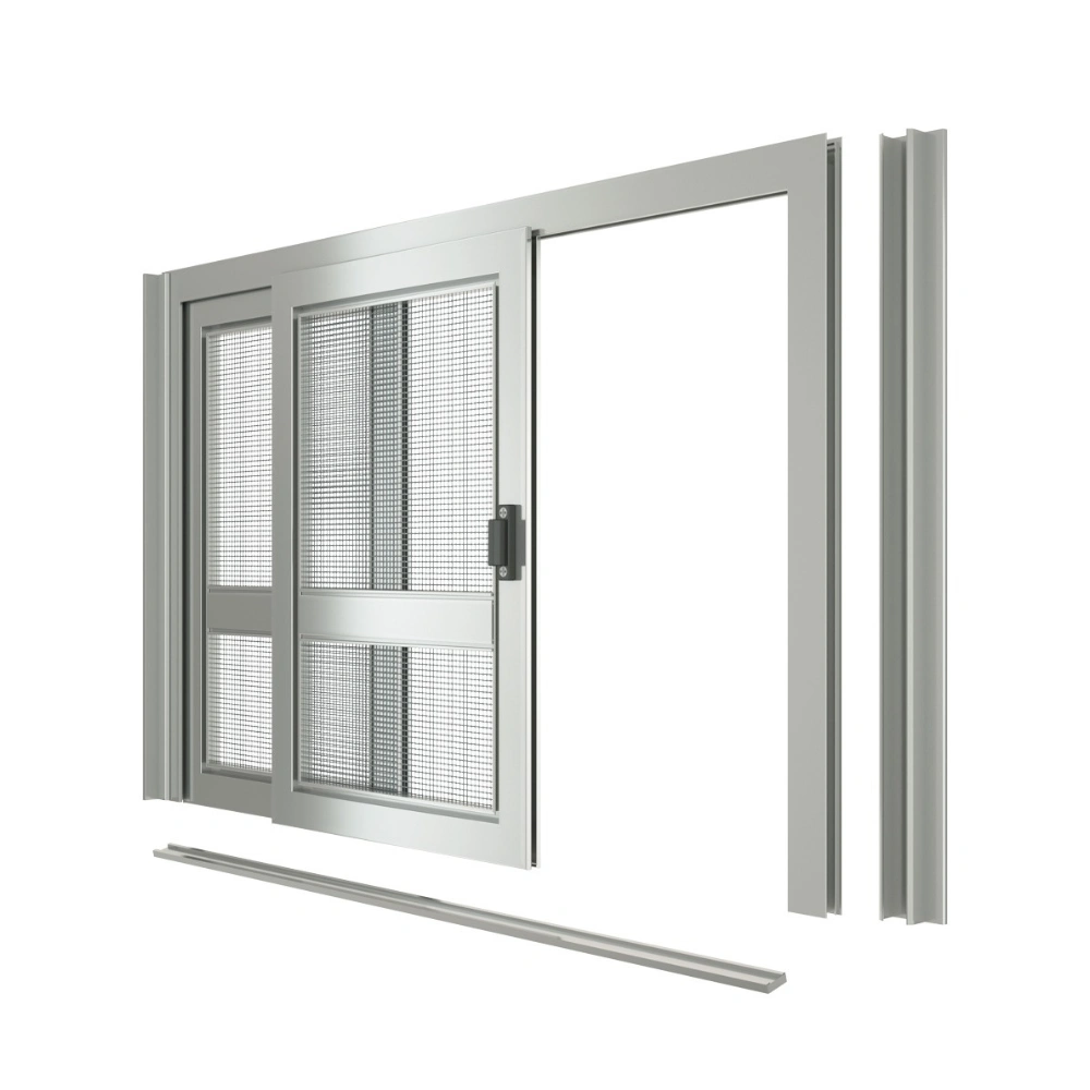 Elegante zanzariera a schermo fisso per finestre, realizzabile nella versione scorrevole ad ante.Di facile applicazione si adatta in spazi molto ridotti.Se non specificato la rete di serie è di alluminio colore nero.La rete optional in acciaio inox è di colore chiaro.Questo modello, anche se di piccole dimensioni, viene fornito con la guida a terra bassa. La guida alta è su richiesta.L’altezza del traverso è a 90 cm da terra (misura sopra traverso).