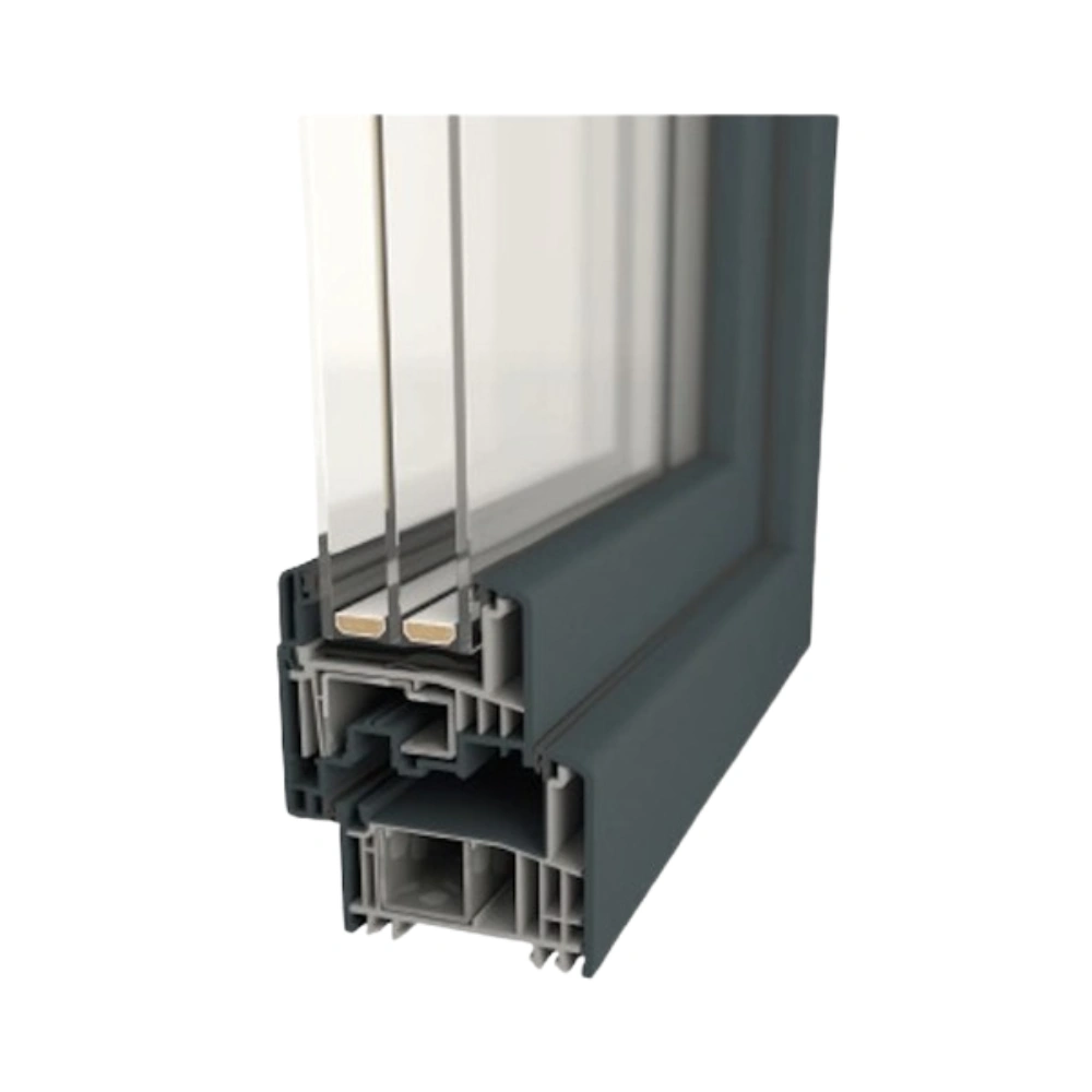 Aluclip con il rivestimento in alluminio per Style 76 ottiene il meglio dei due materiali: un elegante design in alluminio con ampia gamma di colori e gli ottimi valori di isolamento termico del più moderno sistema per profili in PVC.